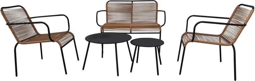 Komplet mebli ogrodowych Henriette Komplet mebli Henriette to elegancki design, trwałe materiały i wysoka jakość wykonania sprawiają, że będzie służył przez długie lata. Krzesła i sofa posiadają siedziska wykonane z wytrzymałego tworzywa, które zapewnia wygodę i odporność na czynniki zewnętrzne. Konstrukcja osadzona jest na stalowych stelażach, malowanych metodą proszkową, co gwarantuje większą odporność na korozję i trwały wygląd. Solidna konstrukcja – stalowe stelaże zapewniają stabilność Malowanie proszkowe – zwiększona odporność na rdzę i uszkodzenia Nowoczesny styl – eleganckie połączenie metalu i tworzywa Łatwość czyszczenia – szybkie usuwanie zabrudzeń Komfortowy zestaw – dwuosobowa sofa, dwa fotele i dwa stoliki Idealny na taras, do ogrodu lub na balkon Świetne miejsce na relaks z rodziną i przyjaciółmi Trwałe materiały zapewniają długą żywotność Dodaj elegancji swojej przestrzeni wypoczynkowej – wybierz komplet Henriette już dziś! Detale Krzesło: 71 x 60 x 80 cm (maksymalne obciążenie: 110 kg) Sofa: 71 x 110 x 80 cm (maksymalne obciążenie: 200 kg) Stolik: 60 x 40 cm (maksymalne obciążenie: 20 kg) Mały stolik: 43 x 35 cm (maksymalne obciążenie: 20 kg)