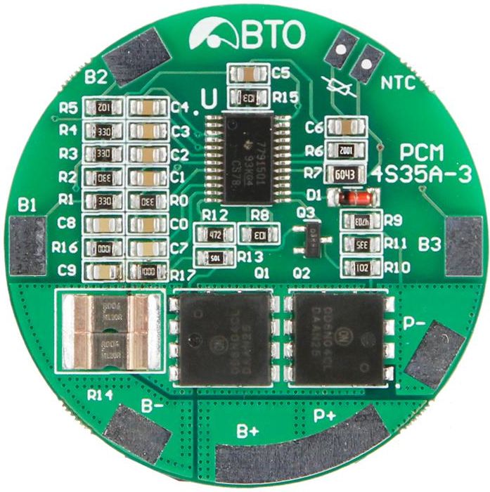 PCM układ zabezpieczenia dla akumulatora Li-ION 14,8V 17A (4S) Zaprojektowano i wyprodukowano w Polsce! Układ zabezpieczający ogniwa przed przeładowaniem, nadmiernym rozładowaniem i zwarciem. Dedykowany dla pakietu akumulatorów litowo-jonowych (Li-ION) dla 4 ogniw w szeregu. W układzie zamontowany jest system balansujący ogniwa. Balansowanie ogniw polega na poprawie wydajności baterii, zwiększenie całkowitej pojemności pakietu oraz jego żywotności. Jest to działanie konieczne, ponieważ poszczególne ogniwa, nawet dostarczane przez tego samego producenta, mogą różnić się między sobą pod względem poziomu maksymalnego rozładowania, pojemności, impedancji oraz charakterystyki temperaturowej. Skutkuje to różnym poziomem ich naładowania, co z kolei wpływa na całkowitą pojemność baterii - na przykład część ogniw w niezbalansowanej baterii może się rozładowywać lub ładować szybciej niż pozostałe. Dlatego balansowanie ogniw jest zwykle zalecane już w przypadku pakietu z co najmniej trzema ogniwami, a w przypadku większej ich liczby staje się koniecznością. Uwaga! Układ PCM wymaga do prawidłowej pracy, podłączenia termistora NTC 10kΩ np. takiego. Małe gabaryty Bardzo niski prąd spoczynkowy ( ≤15µA) Pełen zestaw zabezpieczeń napięciowych, prądowych i temperaturowych Pasywne balansowanie ogniw (50mA) Dla 4 ogniw Li-ION połączonych szeregowo Wykrywanie przerwy w obwodzie ogniwa Wyjście do podłączenia termistora NTC Dane techniczne maksymalny prąd ciągły ładowania: 10A maksymalny prąd ciągły rozładowania: 17A zabezpieczenie przed przeładowaniem: napięcie włączające płytkę: 4,05V ± 0.01V napięcie wyłączające płytkę: 4,25V ± 0.01V zabezpieczenie przed nadmiernym rozładowaniem: napięcie włączające płytkę: 3.2V ± 0.018V napięcie wyłączające płytkę: 2.8V ±0.018V zabezpieczenie nadprądowe: 10A ± 2A pobór prądu układu kontrolującego: ≤15µA dodatkowa opcja: wyjście na bezpiecznik termiczny - NTC wymiary: średnica: 42mm; grubość: 3mm waga: 6,5g Karta Katalogowa