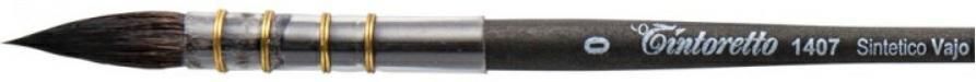 Pędzel do akwareli Tintoretto typu MOP nr 0 1407 Profesjonalne pędzle do akwareli z syntetycznym włosiem imitującym wiewiórkę kazańską. Wyjątkowo cienka i elastyczna końcówka zapewnia wygodną pracę. Pędzel charakteryzuje wysoka chłonność wody. Rączka jest zagruntowana specjalnym lakierem wnikającym w strukturę drewna, dzięki czemu jest wodoodporna. Matowe wykończenie zapobiega wyślizgiwaniu się pędzla. Dostępne rozmiary: 5/0. 3/0, 2/0, 0, 2, 4, 6, 8, 10, 12, 14, 16, 18.