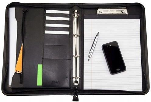 Piękna skórzana Teczka Aktówka A4 z segregatorem, notatnikiem z klipsem Łódź