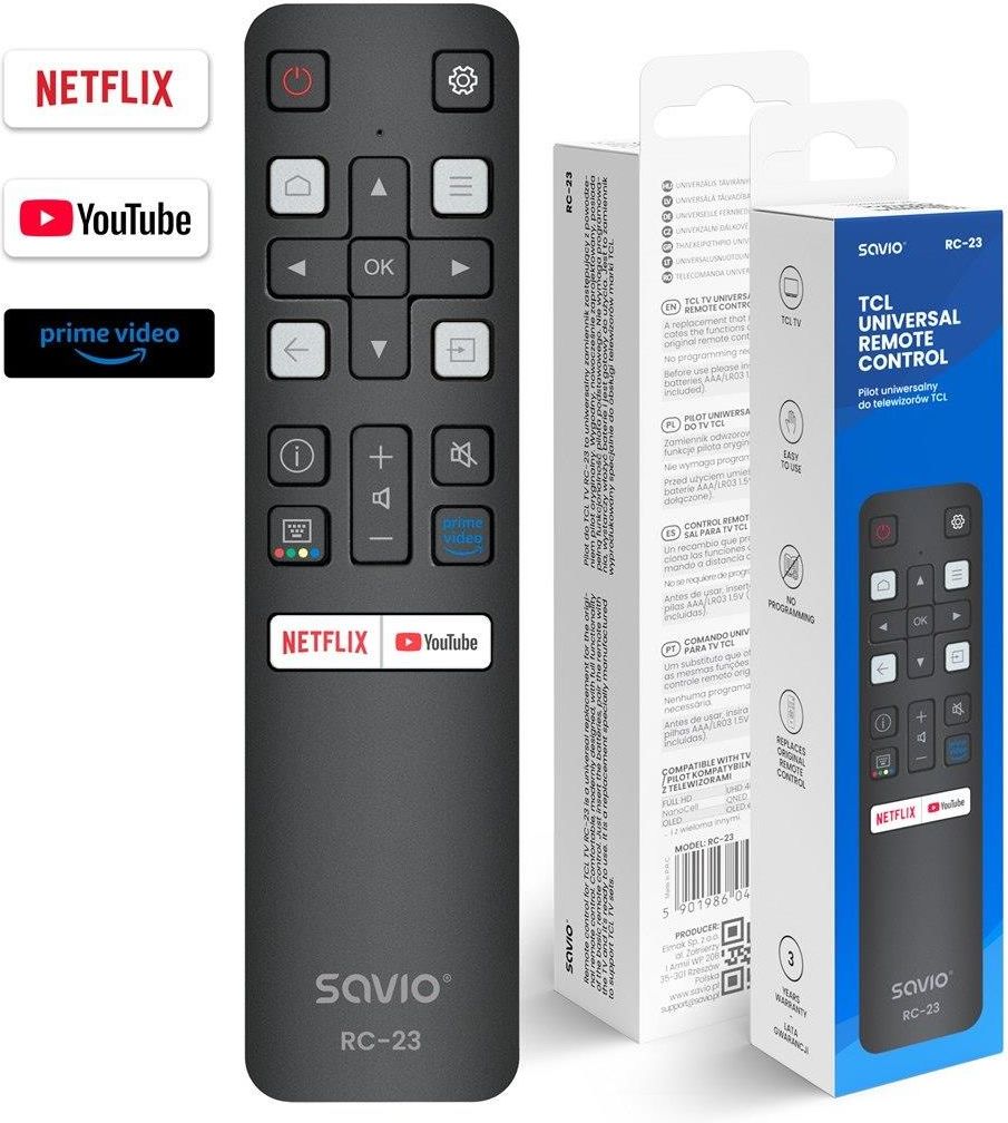Pilot Savio PILOT UNIWERSALNY/ZAMIENNIK DO TV TCL-SMART TV RC-23 (RC23) Łódź