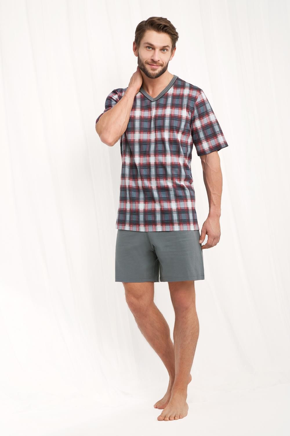Grafitowa piżama męska z krótkim rękawem to idealna propozycja dla panów, którzy cenią klasyczne rozwiązania, połączone z praktycznymi elementami. Dekolt w serek optycznie wysmukla całą sylwetkę, natomiast krótki rękaw sprawia, że idealnie sprawdza się na letnie noce. Dodatkowo dekolt urozmaicony …