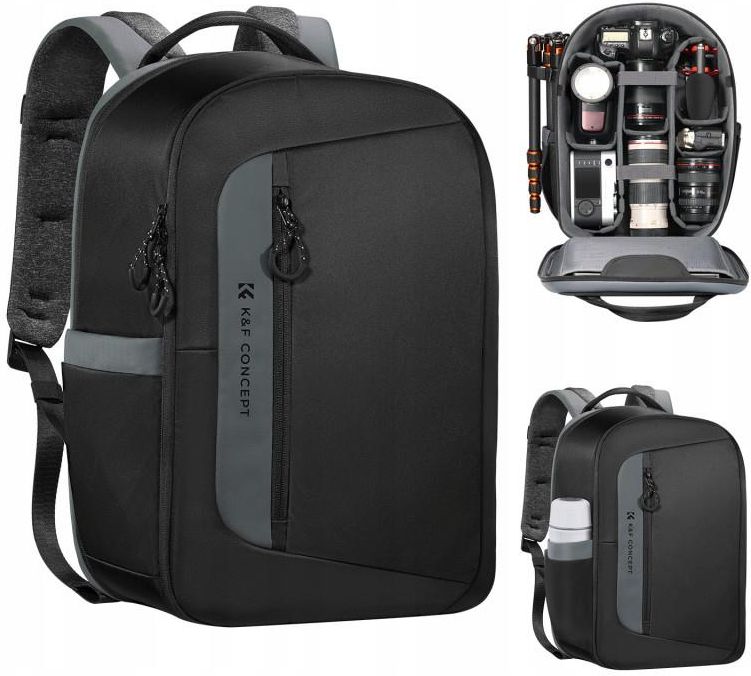 Pojemny plecak fotograficzny firmy K&F Concept Kolor: CZARNY Profesjonalny plecak fotograficzny do przechowywania Twoich rzeczy. Trzymaj w plecaku aparat, obiektywy, laptopa, drona, statyw oraz inne, niezbędne akcesoria fotograficzne. Układ komorowy pozwoli na dobrą organizację przestrzeni oraz uniknięcie bałaganu. Dzięki dużej przestrzeni i pojemności plecak ten stanie się Twoim ulubionym partnerem podczas podróży! Główne cechy produktu Boczna kieszeń do przechowywania statywu Kieszeń na laptopa 15,6" W zestawie pokrowiec przeciwdeszczowy Wewnątrz małe kieszenie na drobne akcesoria foto Możliwość bezpiecznego montażu na walizce Pojemność: 22L Wymiary: 44 x 30 x 17 cm Waga: 1,3 kg W zestawie pokrowiec przeciwdeszczowy. Duża pojemność Dzięki wyjątkowej i funkcjonalnej organizacji komór, w plecaku zmieścisz wszystkie niezbędne przedmioty. Modyfikuj ułożenie komór według własnych potrzeb. W plecaku zmieścisz aparat, obiektywy, laptopa, drona, statyw oraz inne niezbędne akcesoria fotograficzne. Dodatkowa boczna kieszeń pozwoli Ci na przenoszenie statywu, napoju lub parasolki. Organizacja przestrzeni Wewnątrz plecaka znajduje się duża ilość komór i kieszeni niezbędnych do przechowywania drobnych akcesoriów fotograficznych. Dzięki zorganizowanej przestrzeni zachowasz porządek wśród swojego sprzętu i unikniesz zgubienia drobnych akcesoriów. Kieszenie są idealne do przechowywania baterii, kabli, ładowarek, filtrów oraz wielu innych. Funkcjonalne rozwiązania Plecak wyposażony jest w wiele funkcjonalnych rozwiązań. Wewnątrz znajduje się kieszeń na laptopa max 15,6". Elastyczna gumka z tyłu plecaka sprawdzi się podczas dłuższych podróży. Jest to idealne rozwiązanie do zamontowania plecaka na walizce. Dodatkowo zapinane szelki na klatce piersiowe odciążą plecy z nadmiaru ciężaru podczas długich pieszych wędrówek.