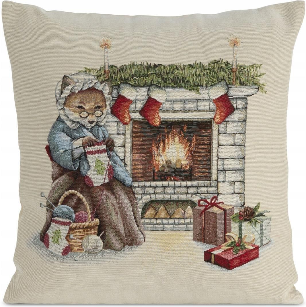 Poszewka Dekoracyjna Świąteczna Gobelinowa 45X45 Eurofirany Naturalna Babcia Lisica Przy Kominku Łódź