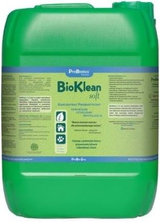 BioKlean Soft - 5L BIOKLEAN SOFT jest wytwarzany w procesie naturalnej fermentacji koncentratów owocowych i ziół z udziałem probiotyków i innych pożytecznych mikroorganizmów. Zawiera aktywną, dobroczynną mikroflorę (w tym szczepy bakterii kwasu mlekowego) i moc metabolitów, kwasy organiczne oraz olejki eteryczne, sosnę i miętę. Wprowadza w domu wyjątkowy mikroklimat i odświeża powietrze. DZIAŁANIE BIOKLEAN SOFT: skutecznie myje i odświeża zabrudzone powierzchnie, neutralizuje nieprzyjemne zapachy, odświeża powietrze, zasiedla przestrzeń i powierzchnie pożyteczną mikroflorą, zapobiega występowaniu pleśni. BioKlean Soft to w pełni naturalny preparat, bezpieczny dla ludzi, zwierząt i roślin. Przebadany dermatologicznie. Ulega całkowitej biodegradacji. Sposób użycia Do mycia wszystkich powierzchni, do odświeżania powietrza i przestrzeni w domu. Używać w rozcieńczeniu z wodą 1:10 wlewając do spryskiwacza, miski, wiadra. Powierzchnie czyścimy ściereczką zwilżoną rozcieńczonym preparatem. Pomieszczania w domu oraz przedmioty, w których gromadzi się kurz – kanapy, łóżka, materace, pościel, dywany, firanki, zasłony, itp. spryskać rozcieńczonym preparatem. Uwaga! Powierzchnie mocno zabrudzone lub tłuste spryskać roztworem, odczekać 5 minut, następnie umyć. Brudne lub pokryte pleśnią fugi spryskać na noc koncentratem, czyścić na drugi dzień. Dodatkowe zastosowania Płukanie prania: w pralkach automatycznych: 10 ml BioKlean Soft na 1 kg prania, pranie ręczne: 10 ml BioKlean Soft na 1 L wody. Zmywarki: wlać 50 ml koncentratu do dozownika zamiast nabłyszczacza. Po zakończonym myciu, wodą z BioKlean Soft można podlewać rośliny w domu i ogrodzie, lub wlać ją do ścieków by zneutralizować nieprzyjemne zapachy, poprawić drożność rur i zasiedlić je dobrą mikroflorą. Skład (zgodnie z Rozp. WE 648/2004): Nie zawiera środków powierzchniowo czynnych. Substancjami myjącymi są kwasy organiczne (mlekowy, propionowy, octowy) wytwarzane przez dobroczynną mikroflorę. Ponadto zawiera: wodę niechlorowaną, koncentrat jabłkowy, liście mięty i pędy sosny, kompleks probiotycznych mikroorganizmów SCD EP 11, enzymy, olejki eteryczne (0,1%) miętowy i sosnowy, linalol, mentol. Przechowywanie Przechowywać w temperaturze pokojowej, w ciemnym i chłodnym miejscu, niedostępnym dla dzieci. Pojemność netto: 5L