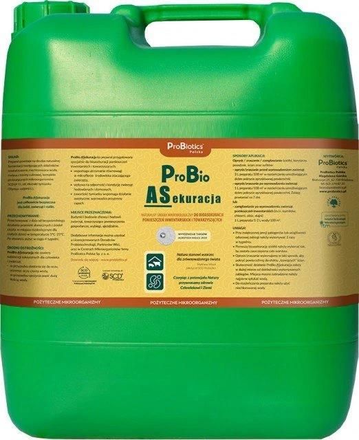 ProBio ASekuracja bioasekuracja chlewni, obór, stajni, kurników 20l Naturalny środek mikrobiologiczny DO BIOASEKURACJI POMIESZCZEŃ INWENTARSKICH I TOWARZYSZĄCYCH ProBio ASekuracja to Mieszanka Paszowa Uzupełniająca przygotowana na bazie żywych kultur probiotycznych mikroorganizmów (SCD ProBio …