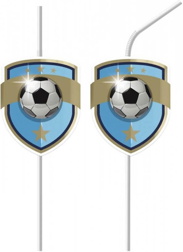 Plastikowe słomki ozdobione papierowym medalionem z piłką nożną.Bezbarwne słomki sprawią radość dzieciom. Opakowanie zawiera: 6 szt. Wymiary: medalion: 7,5x9 cm długość słomki: 24 cm