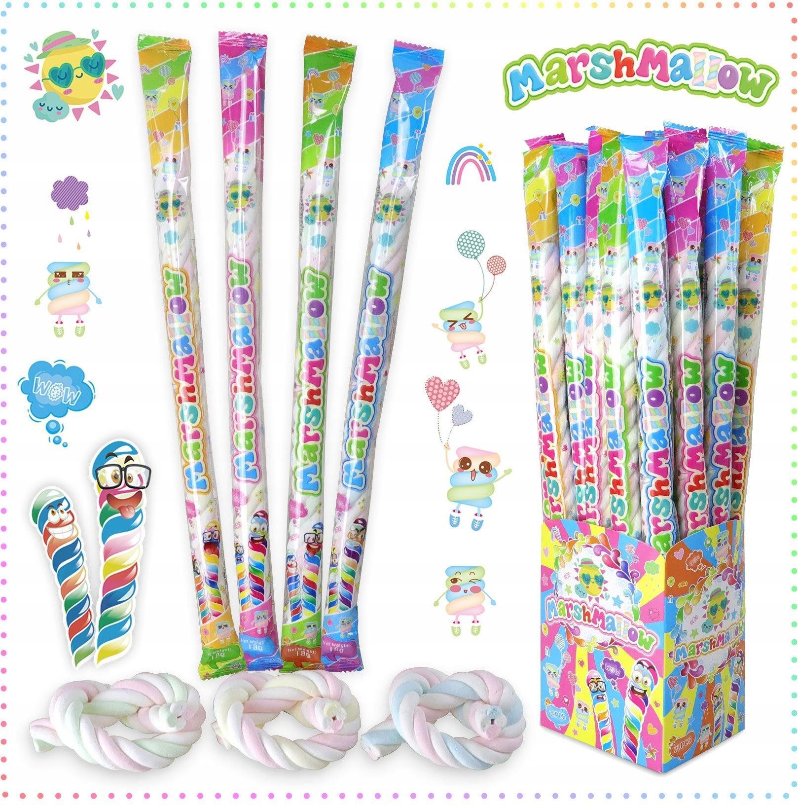 Marshmallow Pianki Świderki 24szt x 18g Marshmallow - Smaczne pianki w kształcie świderków o smaku owocowym. W opakowaniu zbiorczym znajdziemy 24 sztuki, każda pianka pakowana osobno w folię. Długość pianki ok. 31 cm. Masa netto (opakowania zbiorczego): 432g Masa netto (sztuki): 18g Składniki: …