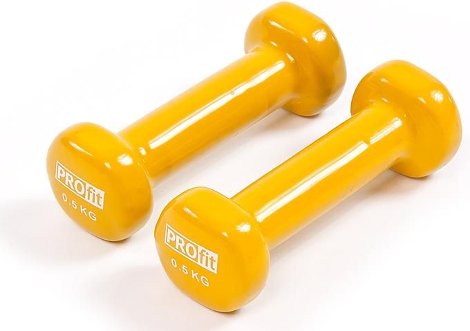 Hantle winylowe Profit żółte 2x0,5kg DK4102 Wysokiej jakości hantle żeliwne pokryte warstwą winylu Profit sprawdzą się w trakcie domowego treningu, w klubie fitness oraz jako forma rehabilitacji. Łatwe do utrzymania w czystości. Gryf hantli zapewnia doskonałą wygodę i komfort trzymania. Zestaw zawiera dwie sztuki o wadze 0,5 kg każda. Dane techniczne: · długość całkowita: 12,5 cm · komplet: 2x0,5 kg