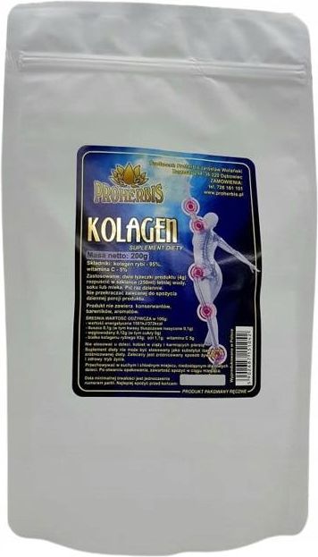 Kolagen rybi proszek 200g WYSOKA JAKOŚĆ z wit. C naturalny czysty morski Dlaczego kolagen rybi? Kolagen ze skór rybich jest zdecydowanie lepiej przyswajany przez organizm niż kolagen pochodzenia bydlęcego. Jest naturalnym składnikiem naszego ciała, stanowiącym 30% całkowitej zawartości białka w organizmie i aż 70% białkowych komórek skóry. To kluczowy element budujący ścięgna, skórę, włosy, kości, stawy i paznokcie. Skutki niedoboru kolagenu Brak kolagenu wpływa negatywnie na wygląd i zdrowie. Objawia się to pogorszeniem kondycji skóry, włosów i paznokci, a także zwiększonym ryzykiem powstawania rozstępów, cellulitu i przebarwień. Niedostateczna ilość kolagenu może prowadzić do osłabienia i wypadania włosów oraz zwiększać ryzyko alergii skórnych. Ponadto, niedobory kolagenu osłabiają kości, chrząstki, stawy i naczynia krwionośne. Codzienne spożywanie kolagenu może wspierać prawidłowe funkcjonowanie chrząstek i kości, wzmacniać naczynia krwionośne, wspomagać leczenie osteoporozy i reumatyzmu, redukować ryzyko urazów, poprawiać elastyczność, jędrność i nawilżenie skóry, zmniejszać widoczność cellulitu i rozstępów. Moc witaminy C w kolagenie Witamina C zawarta w produkcie wspomaga produkcję i wchłanianie kolagenu. Dodatkowo, przyczynia się do utrzymania prawidłowego metabolizmu energetycznego, poprawiając witalność i redukując zmęczenie. Wzmacnia również układ odpornościowy i chroni komórki przed stresem oksydacyjnym. Składniki Kolagen ze skór rybich: 95% Witamina C: 5% Produkt nie zawiera konserwantów, barwników ani aromatów. Opakowanie: 200g Zastosowanie Rozpuścić 2 łyżeczki produktu w szklance (250ml) letniej wody, soku lub mleka. Spożywać raz dziennie. Nie przekraczać zalecanej dawki dziennej. Przeciwwskazania Nie stosować u dzieci, kobiet w ciąży i karmiących piersią, ani w przypadku uczulenia na którykolwiek składnik produktu. Przechowywanie Przechowywać w suchym, chłodnym miejscu, niedostępnym dla dzieci. Chronić przed światłem. Zalecenia Suplement diety nie zastępuje zróżnicowanej diety. Zaleca się prowadzenie zdrowego trybu życia i różnorodne odżywianie. Zadbaj o swoje zdrowie i piękno z naturalnym kolagenem rybim!