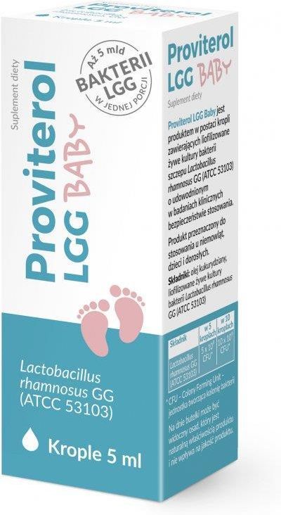 Proviterol LGG Baby krople 5 ml od 1 dnia życia od urodzenia Proviterol LGG Baby jest suplementem diety w postaci zawiesiny, zawierającym liofilizowane żywe kultury bakterii szczepu Lactobacillus rhamnosus GG (ATCC 53103) o udowodnionym w badaniach klinicznych bezpieczeństwie stosowania. Aż 5 mld …