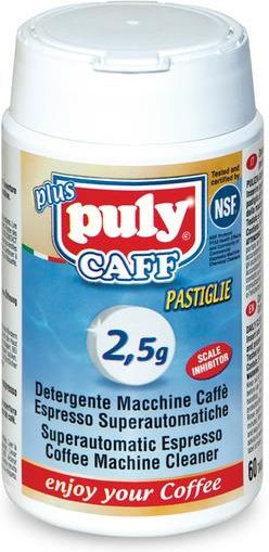 Puly CAFF Tabletki czyszczące Opakowanie: 10szt. x 2,5g Do użytku codziennego, czyszczą wnętrze ekspresu z zalegających resztek kawy w obwodach kawowych, na grupie zaparzającej oraz elektrozaworach. Średnica 10mm, pasująca do ekspresów automatycznych wszystkich marek. Używać zgodnie z zaleceniami producenta ekspresu, podanymi w instrukcji obsługi urządzenia. Tabletki marki Puly Caff przeznaczone do czyszczenia ciśnieniowych ekspresów do kawy. Puly Caff Plus Tabs skutecznie czyszczą wewnętrzne części i przewody wodne w naszych ekspresach. Tabletki zaleca się stosować raz w miesiącu lub co 500 przygotowanych kaw. Utrzymanie ekspresu w czystości, zwłaszcza przy pracy z mlekiem, kawą i wodą, jest kluczem do wysokiej jakości przyrządzanych napojów.