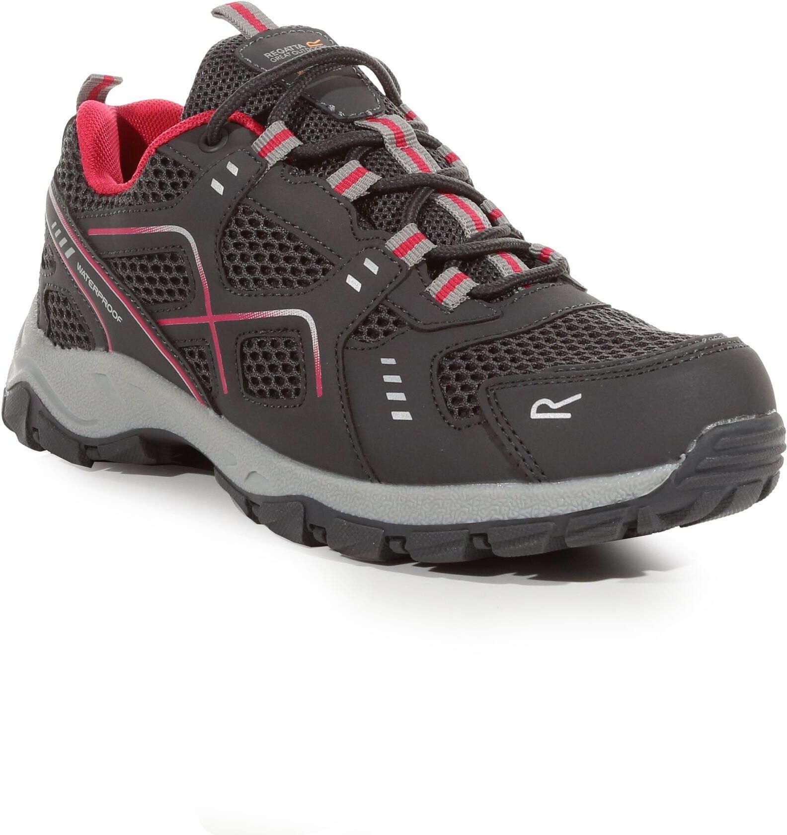 Damskie buty turystyczne Regatta Lady Vendeavour to właściwy wybór na piesze wędrówki i zajęcia rekreacyjne. Wodoodporne, oddychające i wygodne damskie sneakersy turystyczne Lady Vendeavour z Regatta są idealne do spacerów na łonie natury. Damskie trampki do chodzenia z uszczelnionym materiałem Isotex chronią przed deszczem i rozpryskami, zapewniając świeżość stóp. Wkładka EVA zapewnia wygodę. Z jasnoróżowymi detalami. Zakończone kątowymi występami dla lepszej przyczepności. Główne cechy: Wodoodporne i oddychające obuwie ISOTEX - podklejane szwy z oddychającą wewnętrzną wyściółką membranową cholewka z PU i siateczki wycinana wkładka EVA zapewnia wygodę i wsparcie pod stopami nowa podeszwa zewnętrzna TPR z samoczyszczącymi i skośnymi wypustkami zapewnia napęd, hamowanie i mniejsze zabrudzenia