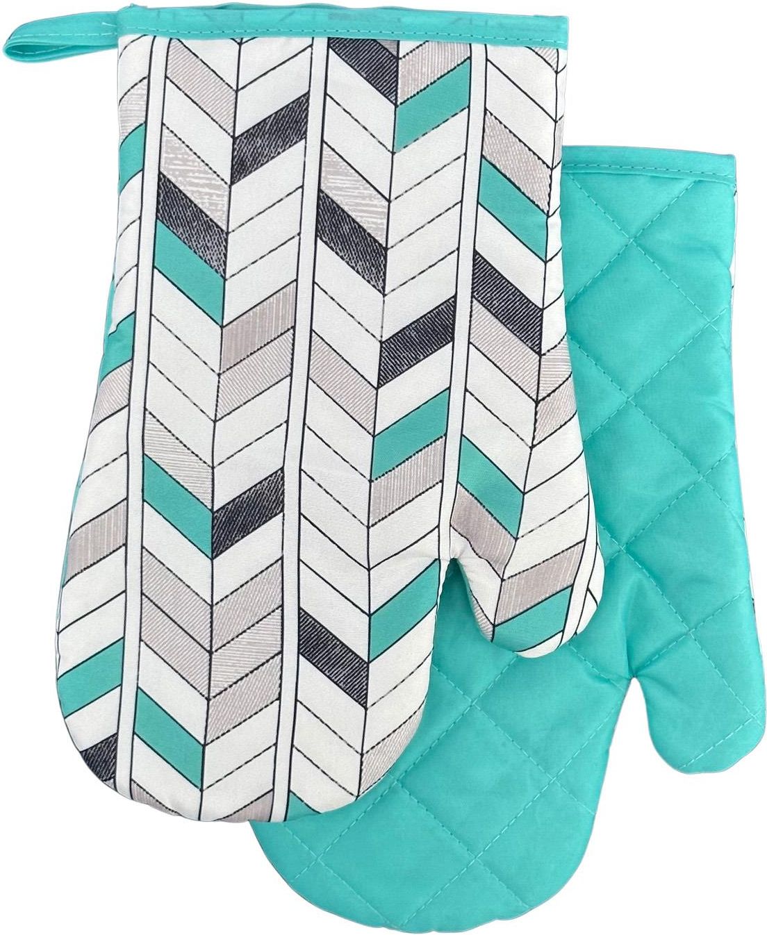 Rękawice kuchenne Euromat poliester biały turkusowy geometryczny wzór 18x27 2 szt. Łódź
