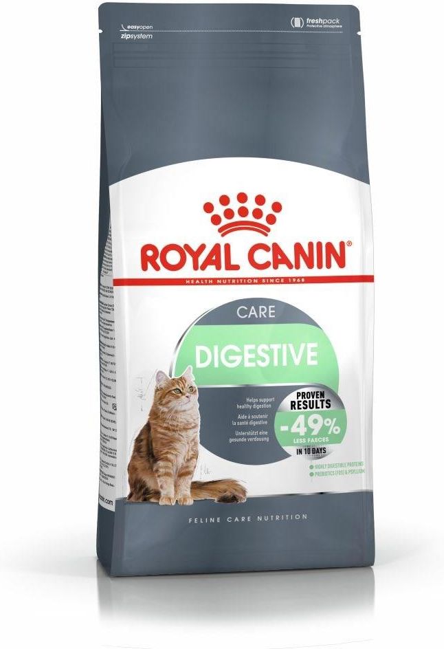 Royal Canin - g warancja najwyższej smakowitości Dlaczego karma Royal Canin będzie odpowiednia dla Twojego zwierzęcia? Bo potrzeb jest wiele, a Royal Canin odpowiada na wszystkie. .lnd_royal_header h1, .lnd_royal_header h2, .lnd_royal_header h3 { font-weight:100; } .lnd_object{ font-weight:300; font-size: 15px; } .lnd_object .responsive-table { overflow-x: auto; } .lnd_object .daily-ration-table{ width:100%; } .lnd_object .daily-ration-table tr td:last-of-type { border-right: 1px solid #e6e6e6; } .lnd_object .daily-ration-table td { font-size: 13px; font-weight: normal; padding: 7px 18px; border-bottom: 1px solid #e6e6e6; } .lnd_object .daily-ration-table tr:nth-child(even) { background-color: #f2f2f2; } .lnd_object .daily-ration-table .header, .lnd_object .daily-ration-table .after-header, .lnd_object .daily-ration-table .empty-row { background: none !important; } .lnd_object .daily-ration-table .empty-row td { padding: 0px; border: 0px !important; } DigestiveCare Wspomaganie prawidłowego trawienia. Rozwiązanie żywieniowe opracowane dla kotów dorosłych wspierające prawidłowe trawienie Unikalne zalety           i wyjątkowe korzyści 49% mniej odchodów po 10 dniach Wrażliwy przewód pokarmowy może prowadzić do zaburzeń procesu trawienia, a w konsekwencji zwiększenia ilości odchodów i pogorszenia konsystencji kału. Zbyt łapczywe jedzenie może dodatkowo prowadzić do wymiotów. Doskonale zbilansowana receptura karmy DIGESTIVE CARE wspomaga prawidłowe trawienie. Podwójne działanie: Wysoka strawność: karma DIGESTIVE CARE zawiera wysokstrawne białka (L.I.P.*). Receptura oparta na unikalnej kompozycji prebiotyków (FOS: fruktooligosacharydy) i włókna (w tym psyllium), wpływa korzystnie na florę jelitową i pasaż treści jelitowej. Zachęca do dłuższego żucia i wolniejszego jedzenia: krokiety DIGESTIVE CARE w kształcie pierścienia zachęcają kota do wolniejszego jedzenia i dokładniejszego żucia, co wpływa na lepsze trawienie. * L.I.P.: białka wyselekcjonowane ze względu na ich wysoką strawność (powyżej 90%), aby wspomagać prawidłowe trawienie i odpowiednią konsystencję stolca. Prawidłowe trawienie Receptura wspomagająca prawidłowe funkcjonowanie układu moczowego u dorosłych kotów, dzięki odpowiedniej koncentracji soli mineralnych. Idealnie zbalansowana                 zawartość               SKŁAD  izolat białka roślinnego*, mąka pszenna, ryż, suszone ryby, tłuszcze zwierzęce, suszone białko drobiowe, hydrolizat białka zwierzęcego, gluten kukurydziany, mąka kukurydziana, włókno roślinne, pulpa z cykorii, sole mineralne, olej sojowy, olej rybny, fruktooligosacharydy (0,3%),łuski i nasiona psyllium (0,2%).  *L.I.P.: białko wyselekcjonowane ze względu na bardzo wysoką przyswajalność. DODATKI  (na 1 kg karmy): Dodatki dietetyczne: Witamina A:17000 UI, Witamina D3: 900 UI, E1 (Żelazo): 41 mg, E2 (Jod): 4,1 mg, E4 (Miedź): 12 mg, E5 (Mangan): 53 mg, E6 (Cynk): 159 mg - Dodatki technologiczne: klinoptylolit pochodzenia osadowego: 10 g - Konserwanty - Przeciwutleniacze. Odpowiednia porcja                  dla Twojego pupila Upewnij się, że opakowanie zostało zamknięte po użyciu - zabezpieczy to karmę przed psuciem i pozwoli uniknąć dostawania się zanieczyszczeń. Dbaj o to, aby Twój pupil miał zawsze dostep do świeżej wody. Jak zmienić karmę na Royal Canin? Zmiana z innej karmy na Royal Canin zajmuje zwykle około 6 -7 dni. Polecane Karmy O firmie       Royal Canin 50 lat zdrowego żywienia psów i kotów Firma Royal Canin powstała z pasji do zwierząt. Założył ją w 1968 roku lekarz weterynarii - Jean Cathary, który szukał rozwiązania żywieniowego dla swojego chorego psa. Dlatego nikogo nie dziwi, że jest to najczęściej polecana marka przez lekarzy weterynarii i hodowców na całym świecie. Suplementacja, Nutraceutyki i witaminy - u nas to standard Każdy krokiet to 50 składników odżywczych niezbędnych do prawidłowego funkcjoniwania organizmu. Zapewniamy najwyższą strawność W naszych karmach znajdują się białka o strawności ponad 90% tak zwane białka L.I.P. Dzięki nim, możemy oczekiwać lepszej jakości stolca, mniejszej tendencji do wzdęć i powstawania gazów oraz mniejszej objętości kału. Twoje zwierze jest wyjątkowe, również dla nas! Sterylizowany? Wybredny? Rasowy? Szczególne potrzeby wymagają precyzyjnych rozwiązań żywieniowych. 158 rodzajów karmy dla psów, 108 rodzajów karmy dla kotów, co rooku powstają nowe innowacyjne rozwiązania.