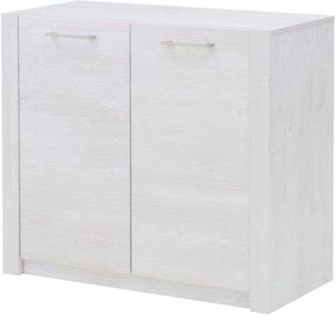VIRGINIA 2D idealnie nadaje się do przechowywania książek, dokumentów lub tekstyliów. Może pełnić funkcję szafki na akcesoria do przedpokoju lub szafki na buty. Jak wszystkie meble z tej serii, wprowadza do pomieszczeń chłodny kolorystycznie klimat, łącząc symetrię konstrukcji z uniwersalnością barw i z subtelnością wykończenia. Meble pozwalają urządzać dom w sposób funkcjonalny, optymalnie wykorzystać przestrzeń i wprowadzać do aranżacji poczucie ładu i porządku. WNĘTRZE Półka dzieli wnętrze na 2 szerokie wnęki. Podwójne drzwi ułatwiają dostęp do wnętrza. WYKOŃCZENIE Komodę wykończono laminatem, zwiększającym trwałość mebla i ułatwiającym jego czyszczenie. Wyraźna struktura białego drewna sosnowego jednocześnie intryguje i rozjaśnia pomieszczenia. W połączeniu z metalowymi uchwytami stanowi uniwersalną propozycję do nowoczesnego salonu. Meble z serii VIRGINIA możesz zestawiać z szarościami, złamanymi odcieniami bieli, z beżem, brązem, granatem. Dobrze prezentują się także w pomieszczeniach o ciemnej kolorystyce.