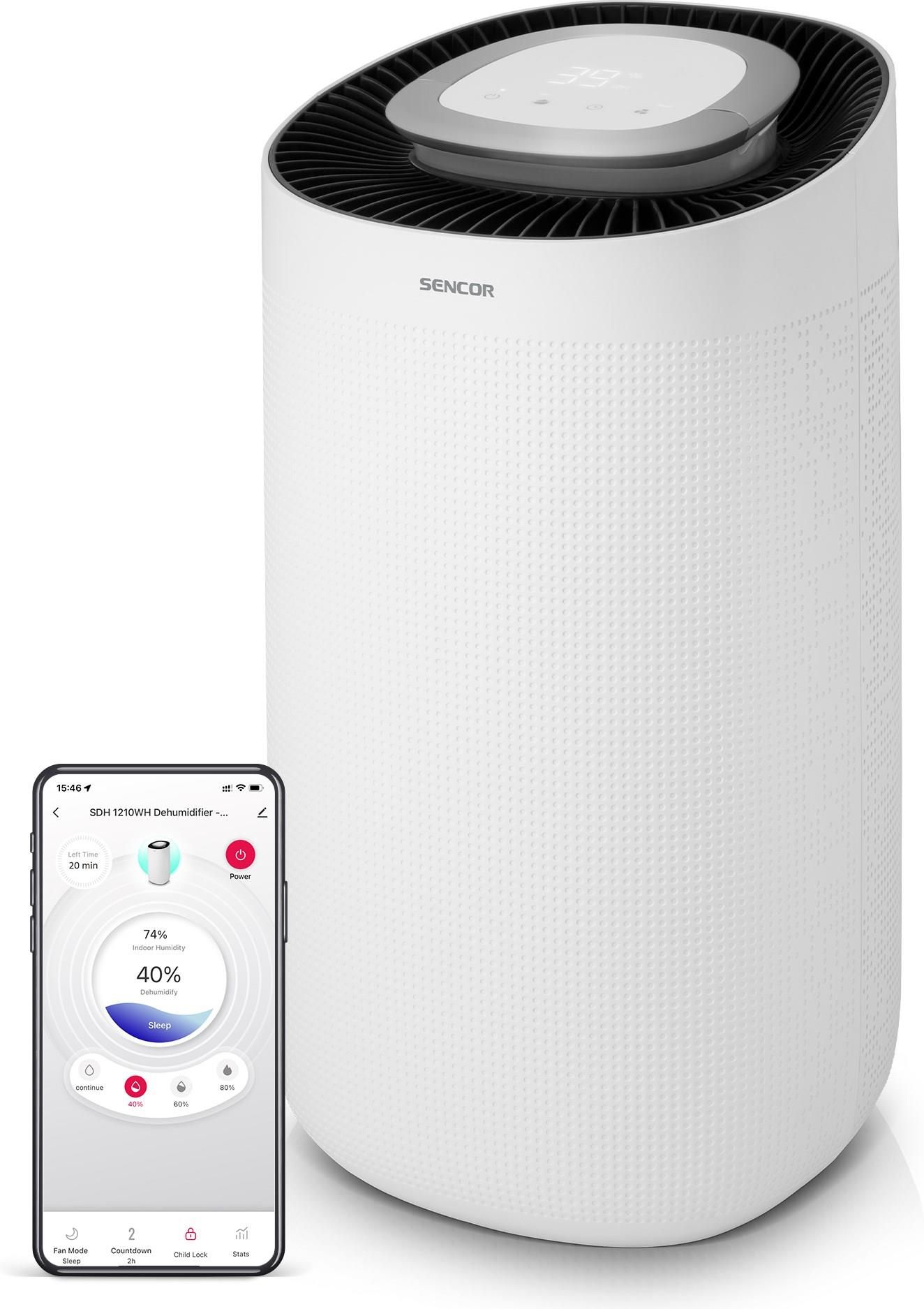 Inteligentny osuszacz i oczyszczacz powietrza SDH 1210WH 2 funkcje: Osuszanie & czyszczenie powietrza Osuszanie powietrza nawet 12 l/doba Odpowiedni do pomieszczeń o powierzchni 18-30 m2 Filtr HEPA H13 GŁÓWNE CECHY Funkcje i właściwości Osuszanie powietrza nawet 12 l/doba 12 l/doba (DB=30 °C / RH=80 %) 6,9 l/doba (DB=27 °C / RH=60 %) Oczyszczacz powietrza ze skutecznym filtrem HEPA H11 Sterowanie za pomocą aplikacji Sencor HOME (iOS i Android) 4 stopnie mocy osuszania: 40 % / 60 % / 80 % / nieustanne osuszanie 3 prędkości wentylatora: wysoka / niska / sleep Timer: 2 / 4 / 8 godzin Sterowanie za pomocą LED wyświetlacza Sygnalizacja napełnienia zbiornika Czujnik wilgotności Wskaźnik świetlny jakości powietrza   Blokada Tryb automatycznego rozmrażania DANE TECHNICZNE Nadaje się do pomieszczeń do: 30 m2 Licznik czasu: Tak Moc (W): 158 W Wysokość (cm): 56 cm Szerokość (cm): 29,5 cm Głębokość (cm): 29,5 cm Kolor: Biały .odstep { padding: 0 40px; } .textUpper { text-transform: uppercase; } @media only screen and (max-width: 720px) { .odstep { padding: 0; } }