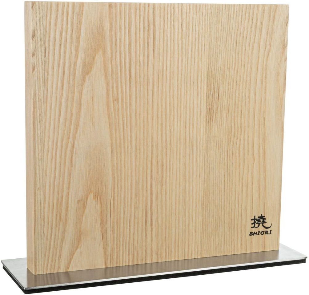 Rustykalny charakter drewna jesionowego Deska Shiori 撓 Asshubōdo wykonana z drewna jesionowego to produkt, który łączy naturalne piękno z praktycznością. Jasny ton i wyraźne usłojenie dodają jej charakteru, dzięki temu deska wygląda świetnie zarówno na tle chłodnego kamienia czy stali, jak i ciepłego drewna kuchennego blatu. Mocny magnes zapewnia pewne zawieszenie noży W desce umieszczono silny magnes, który pozwala bezpiecznie zawiesić do 4 noży. Dzięki temu ostrza nie przesuwają się, nie uderzają o siebie i łatwo je sięgać, kiedy gotujesz, gdyż wszystkie są pod ręką. Stabilność i komfort użytkowania Deska magnetyczna Asshubōdo waży około 2 kg, co sprawia, że stoi pewnie na blacie i nie przesuwa się przy wyjmowaniu noża. Do tego antypoślizgowa podstawa zapobiega przesuwaniu się podczas codziennego użytkowania, nawet gdy blat jest wilgotny. Rozmiar dopasowany do kuchni Deska ma wymiary 25 × 25 cm. Kształt kwadratu jest estetyczny i funkcjonalny oraz znajdzie swoje idealne miejsce na większości blatów kuchennych. Jest na tyle duża, by swobodnie zawiesić kilka noży bez ścisku. Design i dodatki, które robią różnicę Krawędzie są delikatnie zaokrąglone, co wpływa na komfort obsługi. Drewno zostało starannie wykończone, dzięki czemu powierzchnia jest przyjemna w dotyku i łatwa do utrzymania w czystości. Naturalny wygląd powoduje, że odcień może się różnić między egzemplarzami - to cecha drewna, nie wada. Zalety deski magnetycznej Asshubōdo, które docenisz dzień po dniu Estetyka i naturalność: wygląda elegancko i naturalnie. Wygoda: noże można mieć zawsze pod ręką. Bezpieczeństwo ostrzy: brak przegródek zmniejsza ryzyko uszkodzenia ostrza. Stabilność: masa i podstawa zapewniają stabilność. Uniwersalność: sprawdzi się zarówno w kuchni domowej, jak i w małym studiu kulinarnym. Jak dbać, żeby służyła długo Wystarczy, że czasem przetrzesz deskę wilgotną szmatką i osuszysz. Co jakiś czas warto zastosować olej spożywczy, który podkreśli wzory drewna i zabezpieczy powierzchnię przed wilgocią. Unikaj pozostawiania jej zanurzonej w wodzie lub w bardzo wilgotnym środowisku, wtedy drewno zachowa swój wygląd i strukturę na dłużej. Każda deska jest produkowana z naturalnego drewna jesionowego, dlatego może wyglądać inaczej niż na zdjęciu. Produkt sprzedawany bez noży, które służą tylko do podglądu. Dane techniczne: Długość deski: 25,00 cm Wysokość deski: 25,00 cm Drewno: jesion Podstawka: antypoślizgowa Waga: 2,00 kg