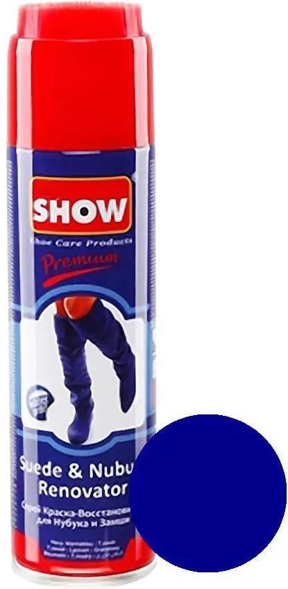 Suede Nubuk Renowator do zamszu, nubuku, Show, 250 ml to pasta do renowacji, odświeżania koloru obuwia wykonanego ze skór zamszowych i nubukowych. Odnawia wygląd powierzchni, przywraca pierwotny wygląd skóry. Skutecznie chroni i impregnuje zamsz, nubuk i tkaniny. Kolor granatowy. Usunąć kurz szczotką. Dobrze wstrząsnąć pojemnikiem rozpylić z odległości ok. 20 cm. Pojemnik trzymać w pozycji pionowej. Stosować wyłącznie w dobrze wentylowanych pomieszczeniach.