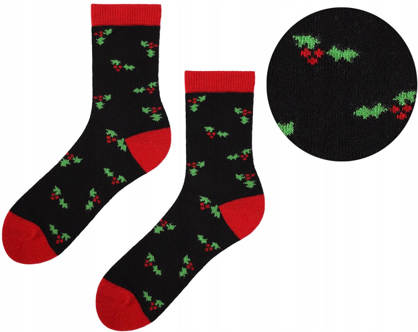 Skarpetki damskie ze świąteczną roślinką Angora No Terry X33 Marilyn Ciepłe skarpetki damskie z domieszką wełny ze świąteczną grafiką ostrokrzewu. Posiadają nieuciskający ściągacz. Są miękkie i komfortowe. Wykonane z najwyższej jakości materiałów. Cechy produktu: ❗️ grafika roślinna ❗️ komfortowe …