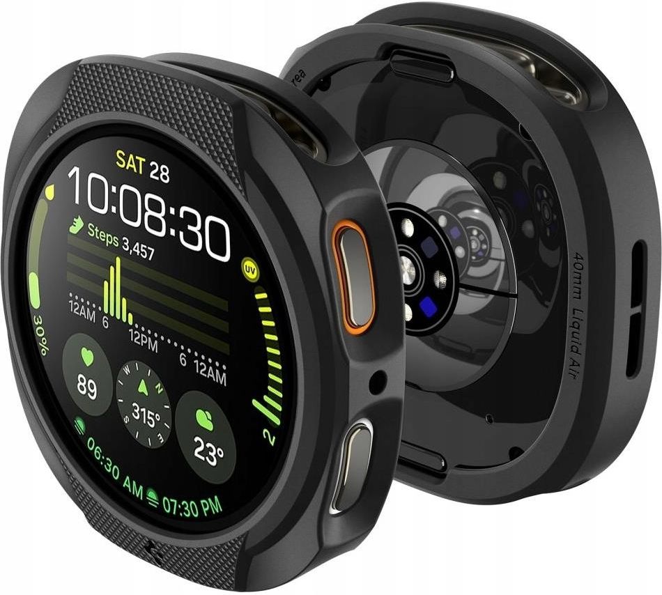 Spigen Liquid Air Do Samsung Galaxy Watch 8 44 mm Wersja kolorystyczna: Matte Black (czarna matowa) Materiał: termopoliuretan Ochrona: przed zarysowaniami Wykończenie: matowe, z akcentami o drobnym wzorze Swobodny dostęp: do funkcji urządzenia Rant ochronny dla ekranu: zabezpieczający przed …