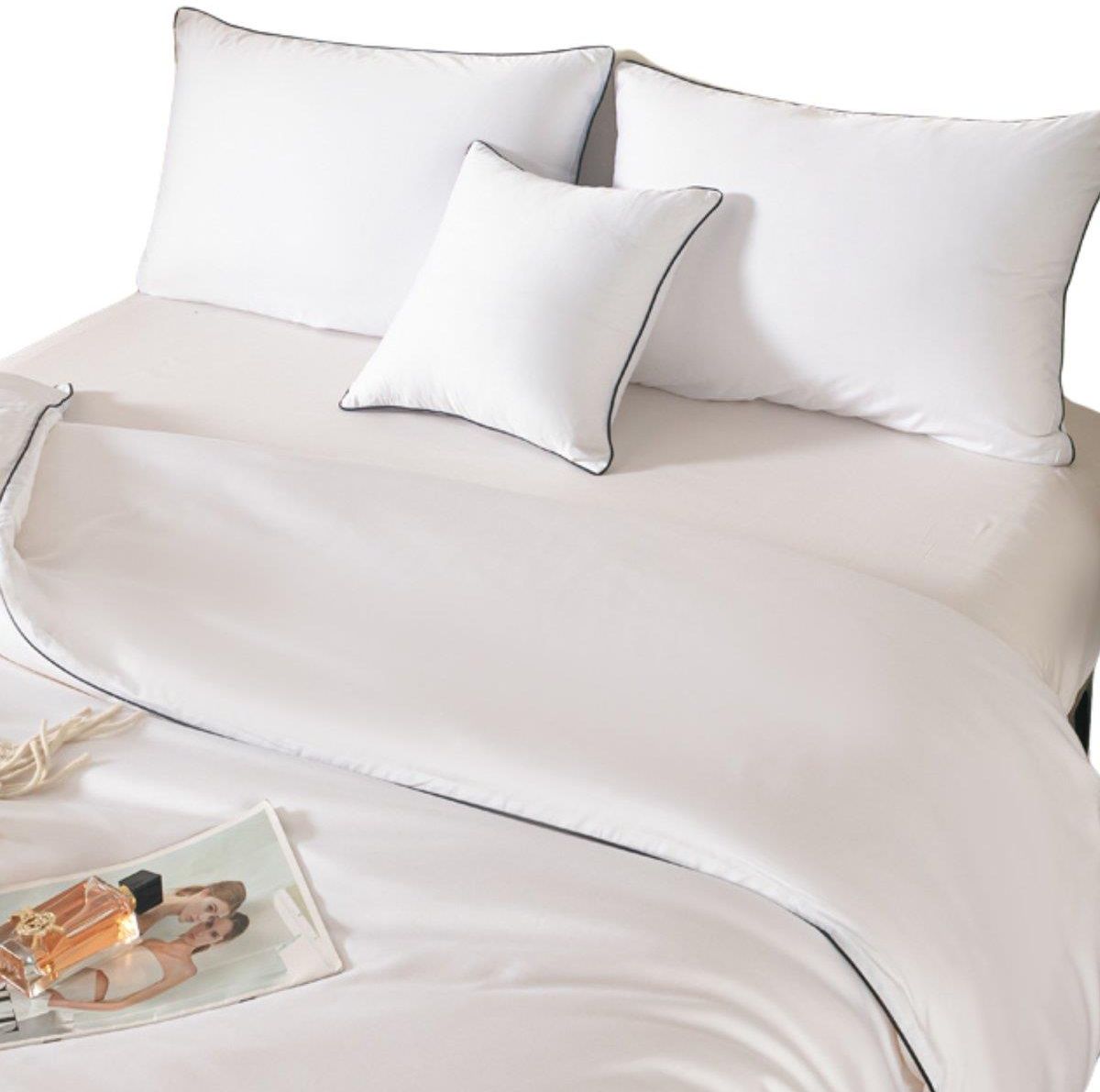 Pościel bambusowa Premium 160x200 cm w kolorze biała z czarną bizą to luksusowa propozycja dla osób, które cenią najwyższy komfort snu, naturalne materiały i ponadczasową elegancję. Wykonana w 100% z włókna bambusowego o gramaturze 150 GSM, zachwyca wyjątkową miękkością, delikatnie śliską w dotyku powierzchnią oraz subtelnym, naturalnym połyskiem, który nadaje sypialni wyrafinowanego charakteru. Oddychająca struktura bambusa sprawia, że pościel doskonale reguluje temperaturę, zapewniając przyjemne uczucie świeżości i komfortu przez cały rok. Naturalne właściwości antyalergiczne materiału sprzyjają zdrowemu i spokojnemu wypoczynkowi, czyniąc pościel idealnym wyborem także dla osób o wrażliwej skórze. Czarna biza biegnąca wokół poszwy oraz poszewek podkreśla luksusowy, hotelowy styl kompletu i nadaje mu eleganckiej lekkości. Starannie dopracowane detale, w tym kryty zamek błyskawiczny, gwarantują estetyczne wykończenie i wygodę użytkowania. Pościel bambusowa Premium 160x200 cm została zapakowana w eleganckie pudełko, dzięki czemu doskonale sprawdzi się również jako stylowy i praktyczny prezent. To idealny wybór do nowoczesnych i klasycznych sypialni, w których liczy się jakość, komfort i ponadczasowy design. Rozmiar: 160x200 cm Kolor: biały, czarny Skład: 100% włókno bambusowe Zapięcie: zamek błyskawiczny