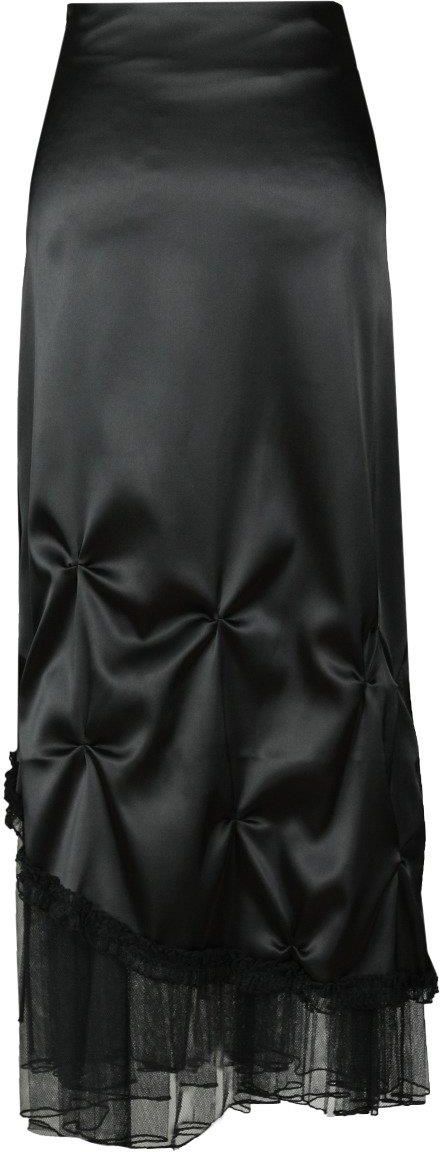 Fason: prosta Długość całkowita: maxi Zapięcie: suwak kryty z boku Ozdoby: tiulowa falbanka, szczypanki Materiał: tkanina elastyczna - satyna, tiul, podszewka
