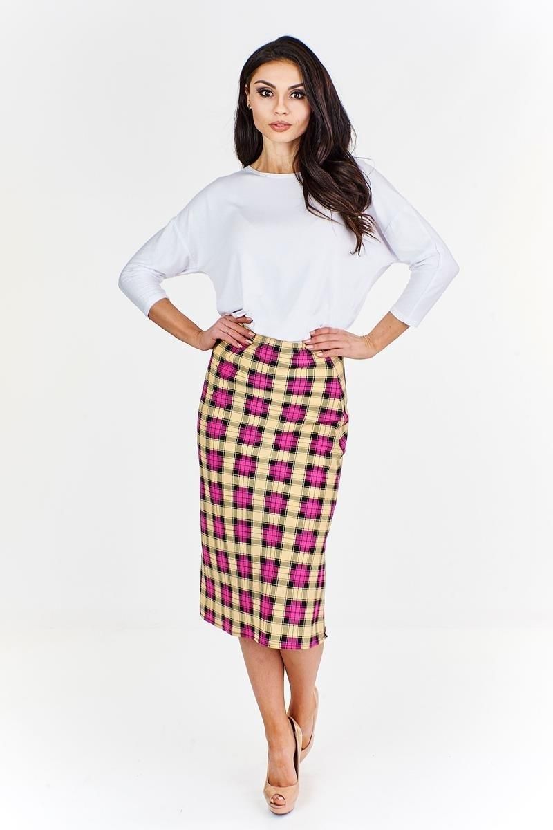 Spódnica FSP771 BEŻOWY + AMARANTOWY kratka Łódź