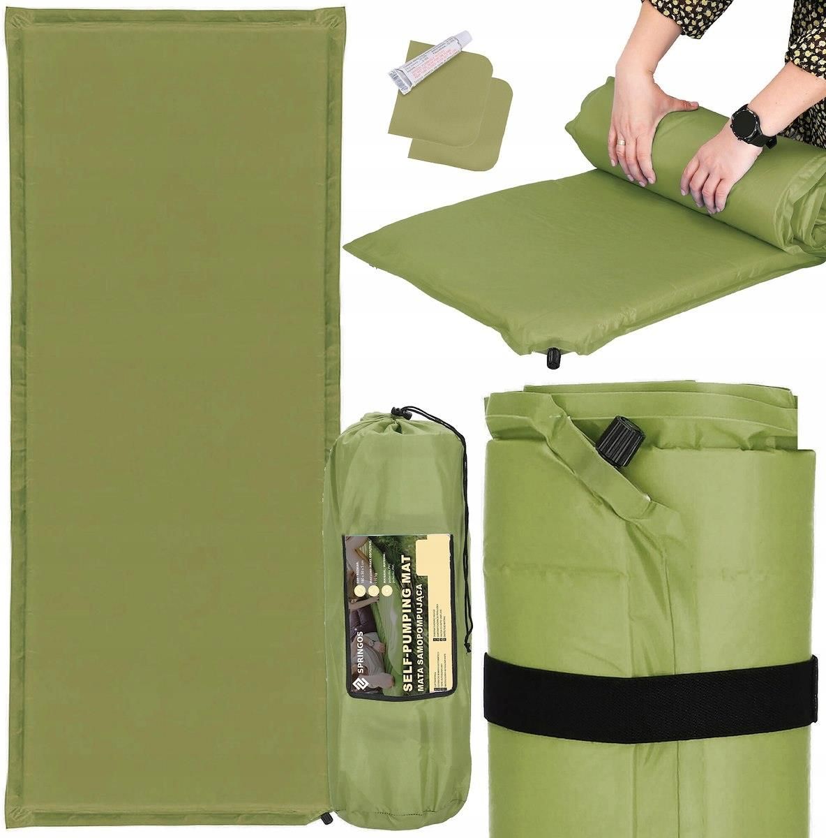 Springos Mata Samopompująca Karimata Turystyczna Pokrowiec 180Cm Dmuchana Gruba Odcienie Zieleni Łódź