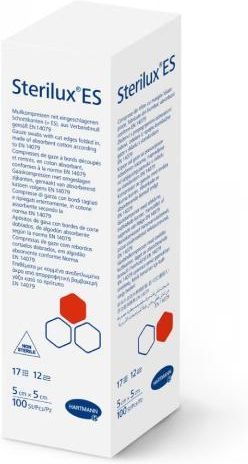 Opis: Hartmann Sterilux ES kompresy niejałowe z gazy bawełnianej 17 nitek 12 warstw to wyrób medyczny do ogólnego opatrywania ran. . Wskazania: Do ogólnego opatrywania ran.. Działanie: Ekonomiczne - charakteryzują się duża chłonnością - są bardzo wydajne; Wygodne - są miękkie i znakomicie się układają; Bezpieczne: Dobrze przepuszczają powietrze - nie zakłócają naturalnych funkcji skóry; Wykonane z gazy bielonej bez użycia chloru; Wytrzymałe na rozrywanie; Składane w systemie ES - posiadają dodatkowo podwinięte do środka brzegi, co dodatkowo zabezpiecza przed strzępieniem się pojedynczych nitek. Praktyczne - w opakowaniach jałowych i niejałowych - doskonale sprawdzają się w opiece ambulatoryjnej i opiece domowej, a dzięki podwiniętym brzegom (ES) także przy bezpośrednim kontakcie z rana. . Opis: Hartmann Sterilux ES kompresy niejałowe z gazy bawełnianej 17 nitek 12 warstw to wyrób medyczny do ogólnego opatrywania ran. . Przeznaczenie produktu: Do ogólnego opatrywania ran.. Zawartość opakowania: 100 sztuk kompresów z chłonnej gazy opatrunkowej 5 cm x 5 cm.. Charakterystyka produktu: Ekonomiczne - charakteryzują się duża chłonnością - są bardzo wydajne; Wygodne - są miękkie i znakomicie się układają; Bezpieczne: Dobrze przepuszczają powietrze - nie zakłócają naturalnych funkcji skóry; Wykonane z gazy bielonej bez użycia chloru; Wytrzymałe na rozrywanie; Składane w systemie ES - posiadają dodatkowo podwinięte do środka brzegi, co dodatkowo zabezpiecza przed strzępieniem się pojedynczych nitek. Praktyczne - w opakowaniach jałowych i niejałowych - doskonale sprawdzają się w opiece ambulatoryjnej i opiece domowej, a dzięki podwiniętym brzegom (ES) także przy bezpośrednim kontakcie z rana..