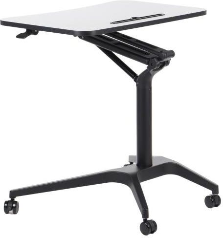 STOLIK JEZDNY A10/BK/BK regulowana wysokość PODSTAWOWE CECHY regulowana wysokość w zakresie 73,5-104 cm podstawa wyposażona w 4 kółka, w tym 2 przednie z hamulcem blat z płyty laminowanej o wymiarach 72x48 cm z miejscem na przybory do pisania stolik skręcany, dostarczany w elementach wyrób …