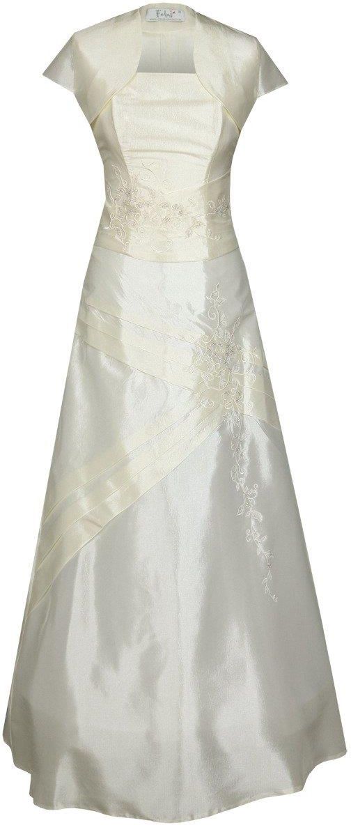 Fason: gorsetowa, rozkloszowana, halka stelaż Dekolt przód: gorsetowy Plecy: odkryte częściowo Zapięcie: sznurowanie z tyłu Materiał: tkanina - tafta, tiul Długość całkowita: maxi Rękaw: odkryte ramiona Ozdoby: haft