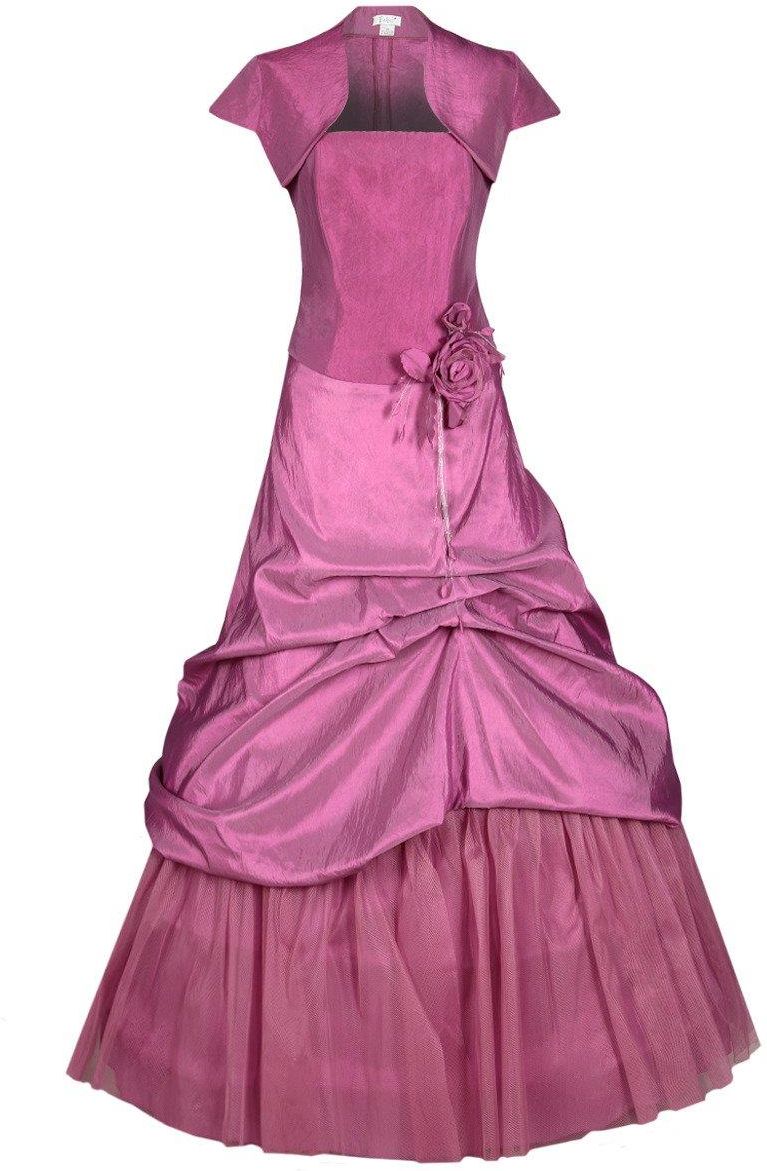 Fason: gorsetowa, rozkloszowana, halka stelaż Dekolt przód: gorsetowy Plecy: odkryte częściowo Zapięcie: sznurowanie z tyłu Materiał: tkanina - tafta, tiul Długość całkowita: maxi Rękaw: odkryte ramiona Ozdoby: kwiat