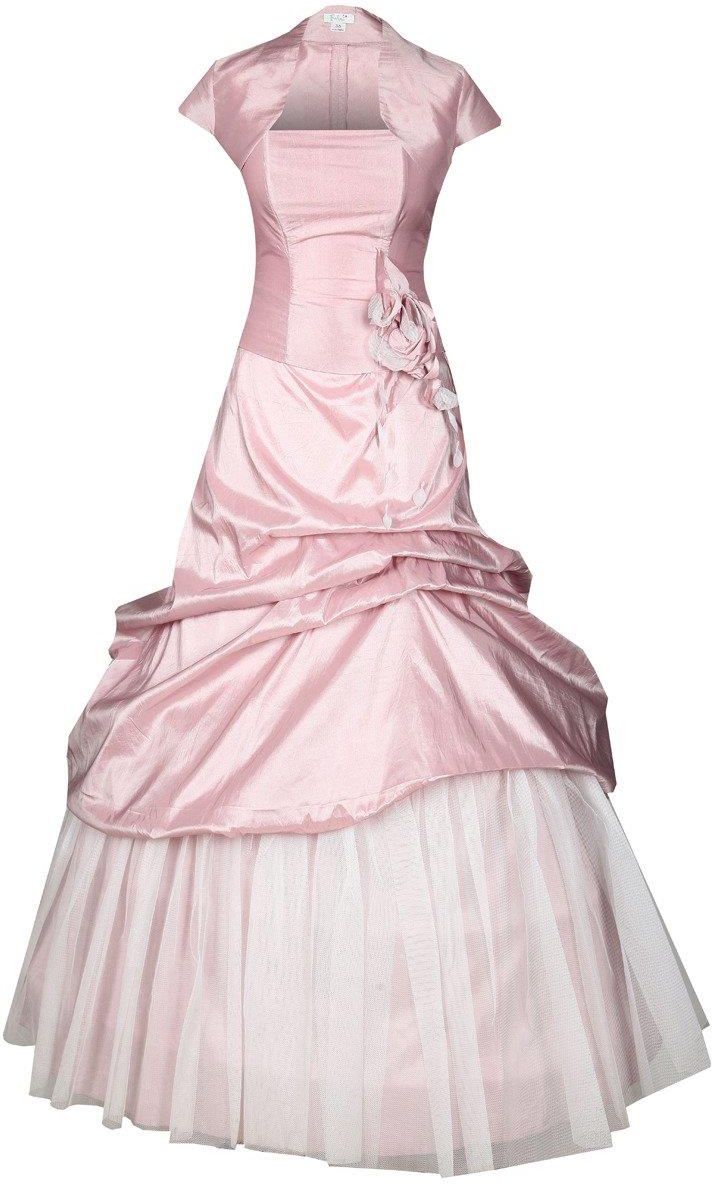Fason: gorsetowa, rozkloszowana, halka stelaż Dekolt przód: gorsetowy Plecy: odkryte częściowo Zapięcie: sznurowanie z tyłu Materiał: tkanina - tafta, tiul Długość całkowita: maxi Rękaw: odkryte ramiona Ozdoby: kwiat