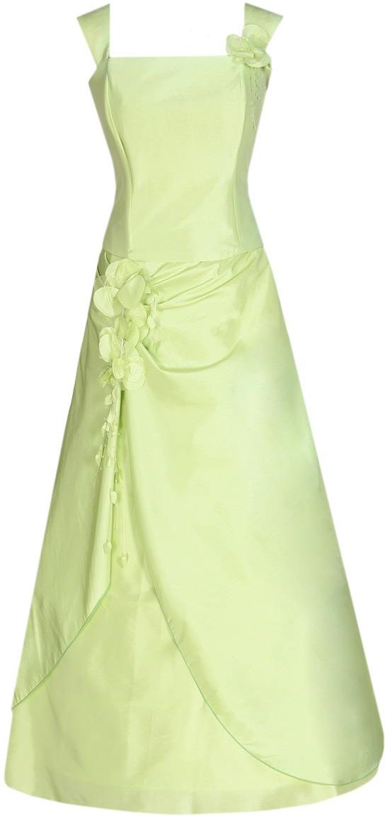 Fason: gorsetowa, rozkloszowana, halka stelaż Dekolt przód: gorsetowy, karo Plecy: odkryte częściowo Zapięcie: sznurowanie z tyłu Materiał: tkanina - tafta Długość całkowita: maxi Rękaw: szerokie ramiączka Ozdoby: kwiat