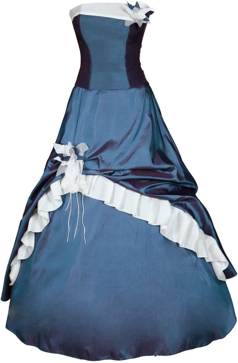 Fason: gorsetowa, rozkloszowana, halka stelaż Dekolt przód: gorsetowy, prosty Plecy: odkryte częściowo Zapięcie: sznurowanie z tyłu Materiał: tkanina - tafta, tiul Długość całkowita: maxi Rękaw: odkryte ramiona Ozdoby: kwiat