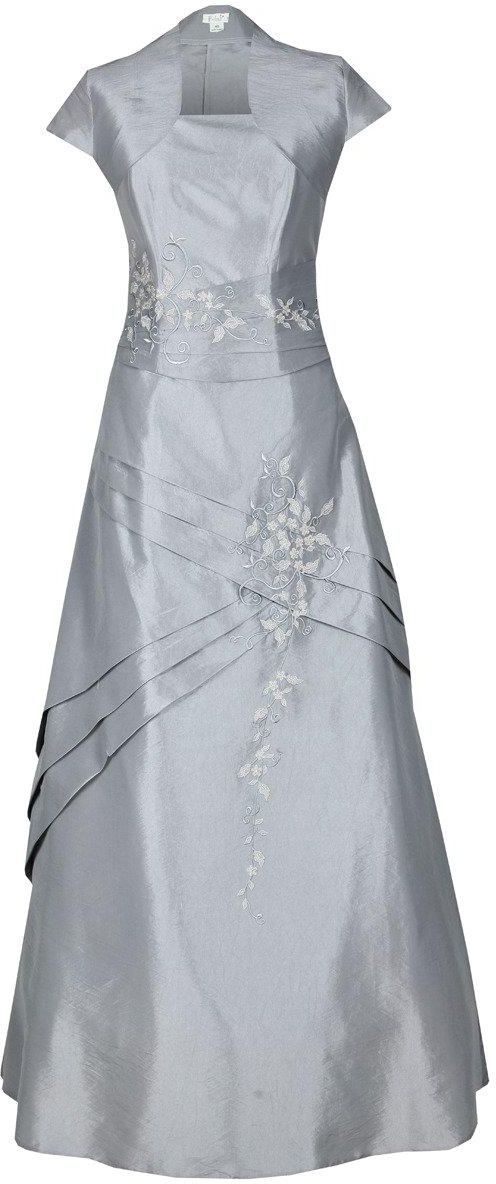 Fason: gorsetowa, rozkloszowana, halka stelaż Dekolt przód: gorsetowy Plecy: odkryte częściowo Zapięcie: sznurowanie z tyłu Materiał: tkanina - tafta, tiul Długość całkowita: maxi Rękaw: odkryte ramiona Ozdoby: haft