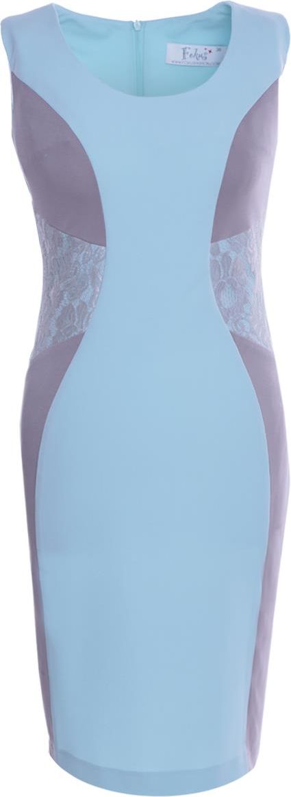 Fason: prosta, rozporek z tyłu Dekolt przód: okrągły Plecy: zbudowane Zapięcie: suwak kryty z tyłu Materiał: tkanina elastyczna, dzianina, koronka Długość całkowita: midi Rękaw: brak Skład surowcowy: 69% poliester, 23% wiskoza, 8% spandex