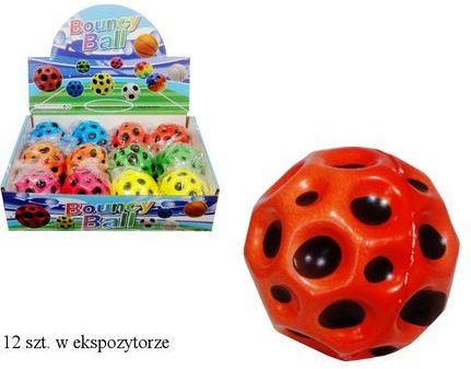 Kolorowa piłeczka kosmiczna z wgłębieniami. Ma średnicę 6 cm, co sprawia, że jest idealna do zabawy zarówno w domu, jak i na zewnątrz. Po rzuceniu o ziemię, odbija się z wyjątkowo dużą prędkością, zapewniając dynamiczną, pełną energii zabawę, która nigdy się nie nudzi. Dzięki specjalnym wgłębieniom w strukturze, piłka nie tylko świetnie odbija się, ale również nadaje się do ugniatania, co pozytywnie wpływa na rozwój umiejętności sensorycznych dziecka. Piłka zapakowana w przezroczysty worek. Mix kolorów - towar wysyłany jest losowo! Cena za 1szt.
