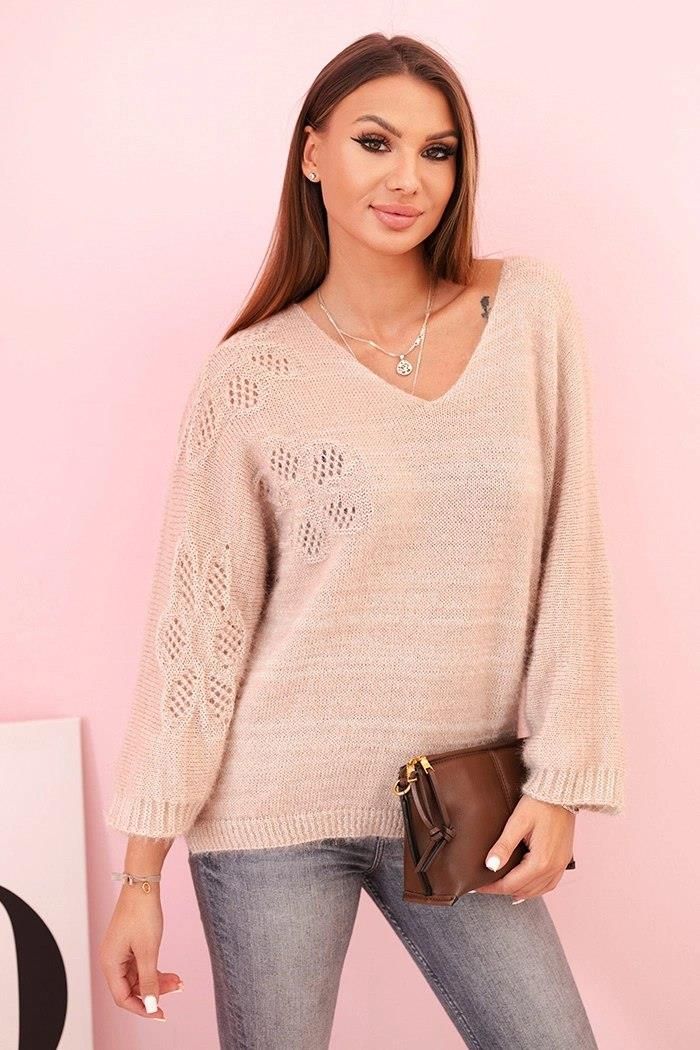 Sweter damski z moheru o luźnym kroju i dekolcie w serek beżowy Łódź