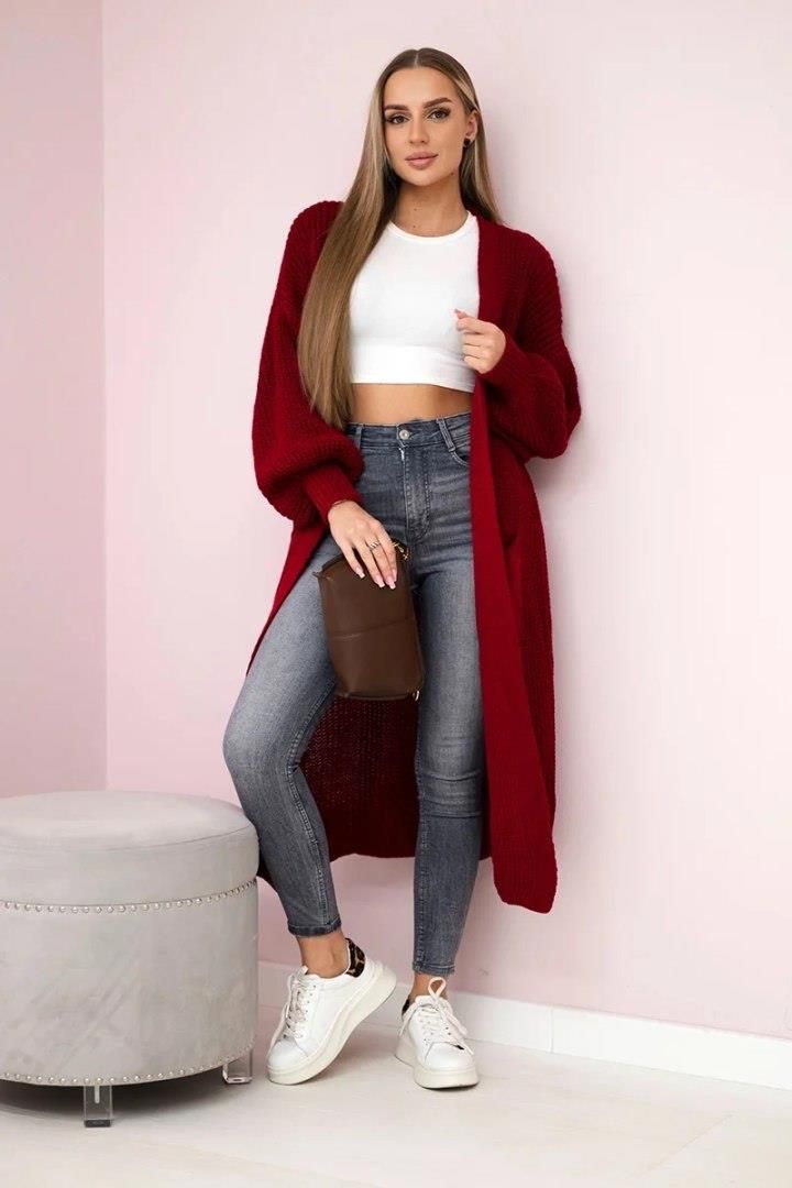 Sweter długi kardigan bordowy to esencja komfortu i stylu. Wykonany z miękkich i przyjemnych w dotyku włókien, ten sweter jest idealnym towarzyszem na chłodniejsze dni. Jego wydłużony fason nadaje mu elegancji, jednocześnie zachowując niezobowiązujący charakter. Sweter pochodzący z Włoch to połączenie doskonałego rzemiosła i włoskiego smaku. Jego finezyjne wykończenia, dodają mu niepowtarzalnego uroku. Dzięki swojej długości sweter ten nadaje się zarówno do noszenia w domowym zaciszu, jak i jako element stylizacji na co dzień. Jego wszechstronność sprawia, że można go nosić zarówno jako lekki płaszcz w cieplejsze dni, jak i jako warstwę ochronną przed zimnem pod grubszym płaszczem. Długi sweter to nie tylko ubranie, ale także wyraz włoskiej elegancji i dbałości o wygodę, który z pewnością podkreśli indywidualny styl każdego, kto go nosi. Rozmiar jest uniwersalny i będzie odpowiedni dla Pań w rozmiarze M, L, XL. WŁOSKA PRODUKCJA Skład materiału: 100% Akryl Wymiary podane poniżej mierzone są na płasko +/- 1 cm W celu uzyskania wymiaru obwodu, szerokość mnożymy razy 2 Wymiary: Szerokość pod pachami: 56 cm Długość rękawa od pachy: 44 cm Długość całkowita: 115 cm Waga: 600 g Sweter długi kardigan bordowy