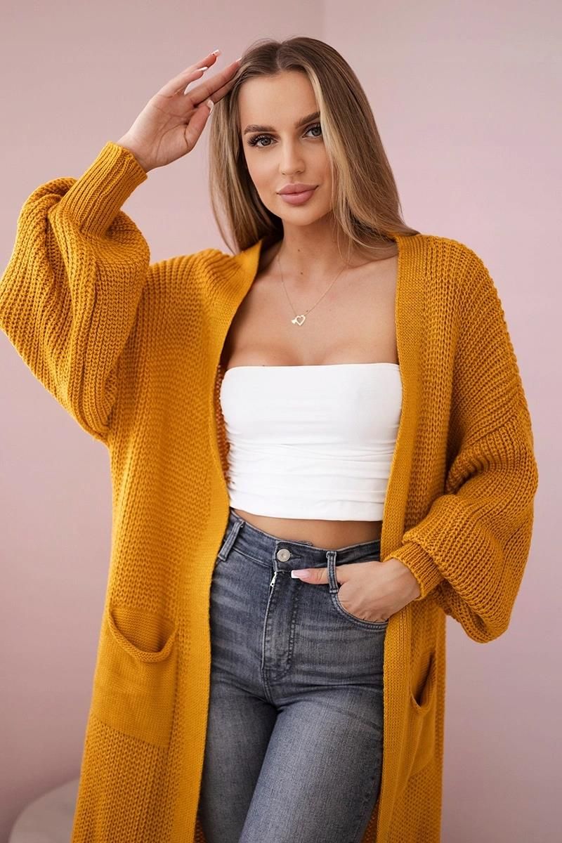 Sweter długi kardigan musztardowy Długość całkowita: 115 cm Szerokość pod pachami: 56 cm Długość rękawa od pachy: 44 cm Długość rękawa: Długi Nowość: Nowość Kolor: Musztardowy Kod producenta: 5907302915153 Długi włoski sweter kardigan to esencja komfortu i stylu. Wykonany z miękkich i przyjemnych w …