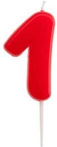 Świeczka na tort cyferka "1" - wysokość cyferki ok. 5,5 cm. Kolor czerwony.