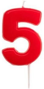 Świeczka na tort cyferka "5" - wysokość cyferki ok. 5,5 cm. Kolor czerwony.