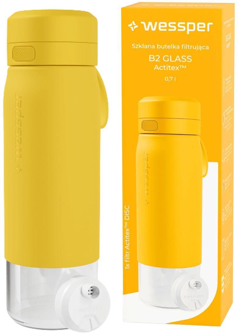Szklana butelka filtrująca wodę, Wessper 700 ml w kolorze żółtym. Łódź