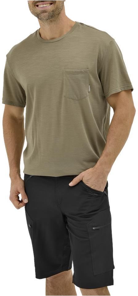Wygodny T-shirt z 4-kierunkowym stretchem. Wyprodukowany z miękkiej i wygodnej mieszanki wełny. Okrągły dekolt, luźny krój i mała kieszeń na piersi.