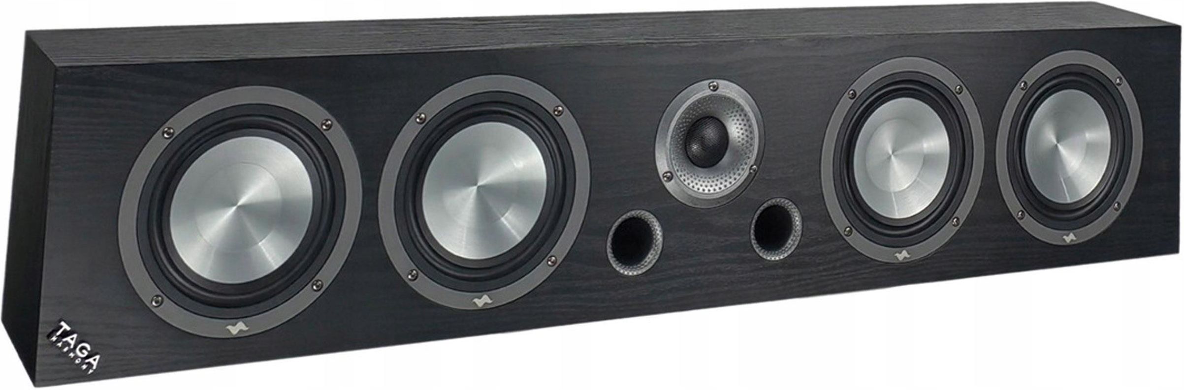 Kolumna centralna Taga Harmony Platinum C-100 v.4 Platinum zawsze była uważana za najważniejszą serię kolumn głośnikowych w kategorii premium TAGA Harmony. Tworząc Platinum v.4, zespół TAGA Harmony był świadomy wysokich oczekiwań co do doskonałej jakości dźwięku znanej z jej poprzedników oraz wyzwań związanych z wprowadzeniem nowego, nowoczesnego wyglądu serii. Efekt końcowy przekroczył wszystkie zaplanowane cele i zaowocował oszałamiającą jakością dźwięku, która zdaniem TAGA Harmony znacznie wykracza poza przedział cenowy serii Platinum v.4. TAGA Harmony całkowicie na nowo zdefiniowała serię Platinum, wprowadzając ulepszenia we wszystkich kluczowych komponentach odpowiedzialnych za dźwięk oraz zupełnie nowe, eleganckie i nowoczesne obudowy. TAGA Harmony wierzy, że muzyka i dźwięk to emocje i to co czujemy, dlatego podczas tworzenia Platinum v.4, najwięcej wysiłku włożono w intensywne testy odsłuchowe oraz dokładne i precyzyjne ustawienia dźwięku. Dźwięk Platinum v.4 charakteryzuje się głębokim, doskonale kontrolowanym i zdefiniowanym basem, gładką i bogatą średnicą oraz zachwycającymi, szczegółowymi i krystalicznie czystymi wysokimi tonami z bardzo otwartą i „napowietrzoną” sceną dźwiękową. Główne Cechy: Obudowa TLIE-II trzeciej generacji (Taga Low Interference Enclosures), w której zastosowano sztywniejszą konstrukcję oraz grubsze przednie ścianki z płyty MDF, mające na celu zwiększenie ich sztywności i ograniczenie niepożądanych rezonansów. Obudowa jest wzmocniona grubszymi wewnętrznymi obręczami oraz dodatkowymi dwoma poprzecznymi wzmocnieniami z płyty MDF, aby jeszcze bardziej zredukować wibracje. Grubość ścianek obudowy: ścianka przednia: 21 mm, ścianki: 15 mm. Przednia ścianka jest pochylona do tyłu, aby wyrównać czasowo wszystkie przetworniki i jeszcze bardziej ograniczyć niepożądane rezonanse i wibracje. Nowe logo TAGA Harmony umieszczone na froncie - pokazuje nasze dążenie i pasję do idealnej harmonii dźwięku. Maskownica mocowana magnetycznie - pomaga zachować bardziej elegancki wygląd kolumn, a także zmniejszyć zniekształcenia, po jej zdjęciu. Wysokiej klasy materiał wytłumiający obudowę, aby lepiej rozbijać fale stojące, obniżać rezonanse oraz ograniczać zniekształcenia, co poprawia gładkość i charakterystykę dźwięku we wszystkich zakresach. Nóżki i kolce z odlewanego ciśnieniowo aluminium - nóżki są wyjątkowo sztywne i grube, aby zapewnić niemal idealną izolację kolumn od podłogi i zwiększyć przejrzystość dźwięku oraz uzyskać lepszą definicję i kontrolę basu. Dodają szyku głośnikom Platinum v.4 i ich nowoczesnemu, ale ponadczasowemu wyglądowi. Wysokiej jakości winylowe wykończenia - bardzo trwałe, eleganckie, imitujące naturalną fakturę drewna i bardzo przyjemne w dotyku. Wykończenia winylowe są starannie nakładane na obudowy przy użyciu precyzyjnych maszyn, aby zapewnić im jak najlepszy wygląd. BOM (Bassreflex Omnidirectional Module) – nisko-szumowe i ultra-szybkie porty basu wykorzystują dyfuzory zwiększające dyspersję niskich częstotliwości. Głośnik wysokotonowy TPTTD-I drugiej generacji (Taga Pure Titanium Tweeter Dome) wykorzystuje lżejszą tytanową kopułkę, a dodatkowy pierścień miedziany na nabiegunniku zwiększa i poszerza pole SPL (Poziom Ciśnienia Akustycznego) i jednocześnie w tym samym czasie obniża zniekształcenia i zapewnia szybszy i precyzyjniejszy ruch kopułki, co przekłada się na bardziej dokładny i „napowietrzony” dźwięk. Głośnik wysokotonowy TPTTD-I drugiej generacji (Taga Pure Titanium Tweeter Dome) wykorzystuje lżejszą tytanową kopułkę, a dodatkowy pierścień miedziany na nabiegunniku zwiększa i poszerza pole SPL (Poziom Ciśnienia Akustycznego) i jednocześnie w tym samym czasie obniża zniekształcenia i zapewnia szybszy i precyzyjniejszy ruch kopułki, co przekłada się na bardziej dokładny i „napowietrzony” dźwięk. Przetworniki średnio i niskotonowe TPACD-II trzeciej generacji (Taga Pure Aluminum Cone Driver) – sztywna aluminiowa obudowa i ultraszybki ruch membrany zapewniają płynne, bogate i bardzo naturalne pasmo średnicy jak również głębokie, precyzyjne i detaliczne brzmienie basu. TRCS - Taga Reversed Cone Surround zapewnia bardziej stabilny, szybszy i większy zakres ruchu membrany, co przekłada się na wyższą dynamikę oraz bardziej precyzyjny i neutralny dźwięk. Zwrotnica Ogrodnika – dźwięk serii Platinum v.4 kontrolowany jest przez sekcje zwrotnic Ogrodnika. Zwrotnice są specjalnie i osobiście zaprojektowane oraz zestrojone przez znanego polskiego projektanta kolumn głośnikowych i recenzenta prasy audio Pana Arka Ogrodnika. Używamy minimalną ilość wysokiej jakości i precyzyjnie dobranych komponentów w sekcjach wysoko i nisko pasmowych, co zapewnia najlepszą neutralność oraz większą precyzję. Wewnętrzne okablowanie wykonane z wielożyłowej miedzi beztlenowej do podłączenia wszystkich przetworników ze zwrotnicami zapewnienia, że sygnał audio nie utraci najważniejszych szczegółów na ścieżce od wzmacniacza do kolumn. Terminale głośnikowe - wysokiej jakości, pozłacane akceptują kable głośnikowe do 10AWG oraz najpopularniejsze typy złączy. Specyfikacja Techniczna: Konstrukcja: Centralna, 2-drożna, 5 przetworników; Obudowa TLIE-II; Odcięcie zwrotnicy: 4.2kHz Moc: 150W RMS Zalecana moc wzmacniacza: 20 - 200W Pasmo przenoszenia: 38Hz - 40kHz Bass-Reflex: Przedni, podwójny Impedancja: 6 Ohm Efektywność: 90 dB Głośniki: wysokotonowy: 25 mm (1”), TPTTD-I, TWG-I średnio-niskotonowy: 4 x 133 mm (5.25"), TPACD-II, TRCS Funkcje/wyposażenie: Magnetycznie mocowana maskownica, Wieszaki ścienne Wymiary (wys. x szer. x gł.): Obudowa (z maskownicą): 18.5 x 90 x 13.5 cm Waga (netto): 8.8 kg
