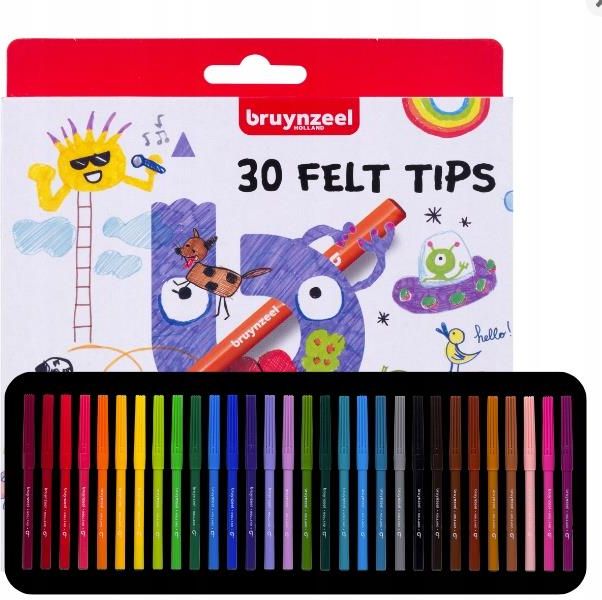 Bruynzeel Flamastry zmywalne 30 kol Bruynzeel Felt Washable Flamastry zmywalne wysoka jakość (High Quality) zestaw 30 kolorów (szary, czarny, odcienie brązu, odcienie różu i fioletu, odcienie zieleni, odcienie niebieskiego, odcienie pomarańczowego, odcienie żółtego) idealne dla dzieci powyżej 3 roku życia opakowanie: etui foliowe