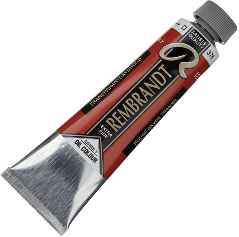 Farba olejna Rembrandt 40 ml - 378 S3 Transparent oxide red Farby Rembrand to najpopularniejszy produkt w świecie artystów plastyków. Są produkowane w Holandii ze starannie dobranych składników. Cenione za unikalną jakość, najwyższy stopień światłotrwałości i niezwykłą wytrzymałość. Farby olejne Rembrandt łatwo mieszają się ze sobą, gwarantując znakomite rezultaty. Kolory pozostają intensywne niezależnie od stopnia krycia. Ich gęsta konsystencja zapewnia wyraziste pociągnięcia pędzla, a po wyschnięciu gwarantuje odporną na alkalia, wytrzymałą, elastyczną warstwę. Zamknięte w metalowych tubkach o pojemności 40 ml.
