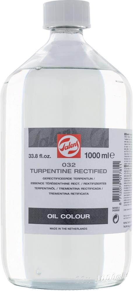 Talens Terpentyna rektyfikowana 1l Talens Rectified Turpentine Terpentyna rektyfikowana wykonana na bazie: balsamu naturalnego, oleju terpentynowego do rozrzedzania farb olejnych i czyszczenia pędzli rozcieńczalnik dla farb olejnych, mediów i werniksów dla farb olejnych rozrzedza farbę (tylko do …